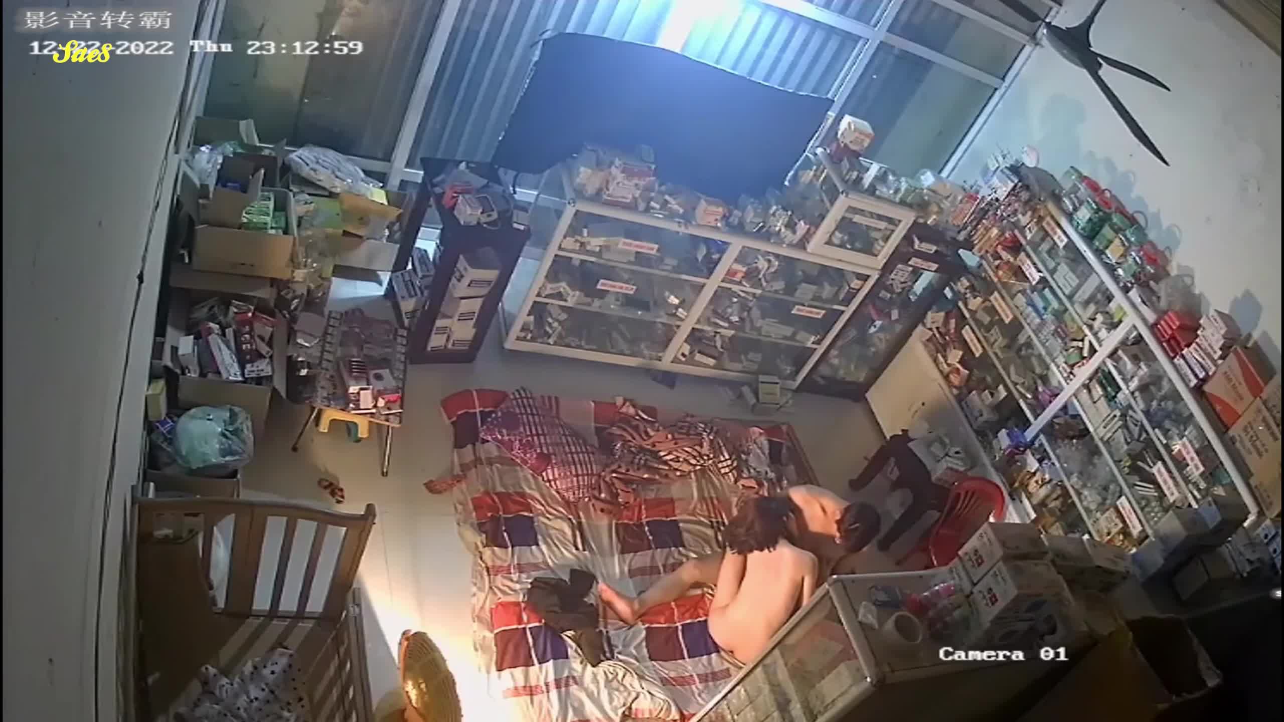 真实破解数码店铺店主和女友打地铺造爱